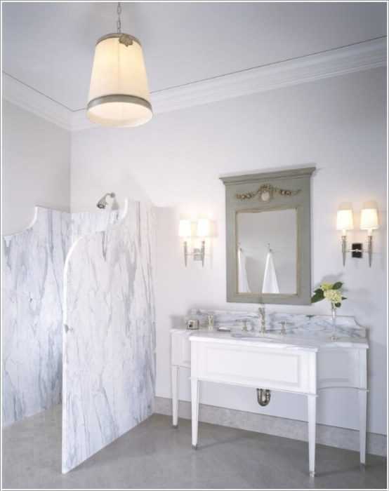 Декоративный мрамор — идеальный камень для душевой кабины, где обычно повышенный уровень влажности.