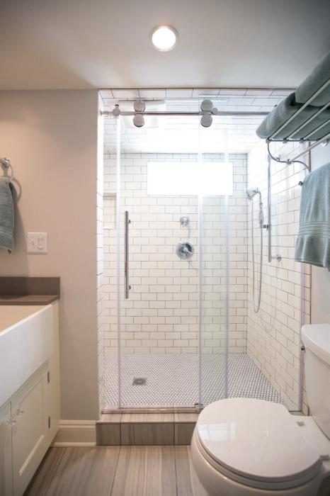 Объединив два помещения в одно, комната увеличивается, давая полёт для фантазии. Сделать его ещё больше поможет замена ванны на душевую кабину. Душевая также даёт возможность быстро принять душ перед работой, что редко удается, имея ванну. Она экономит расход воды, что немаловажно. Также, современные душевые кабинки имеют дополнительные полезные функции, такие как радио, телефон, функция бани и ароматерапии.
