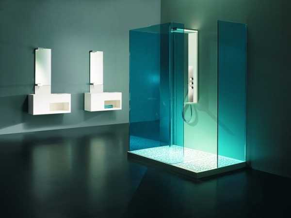 С целью безопасности при создании современной душевой кабинки используется ударопрочное стекло.