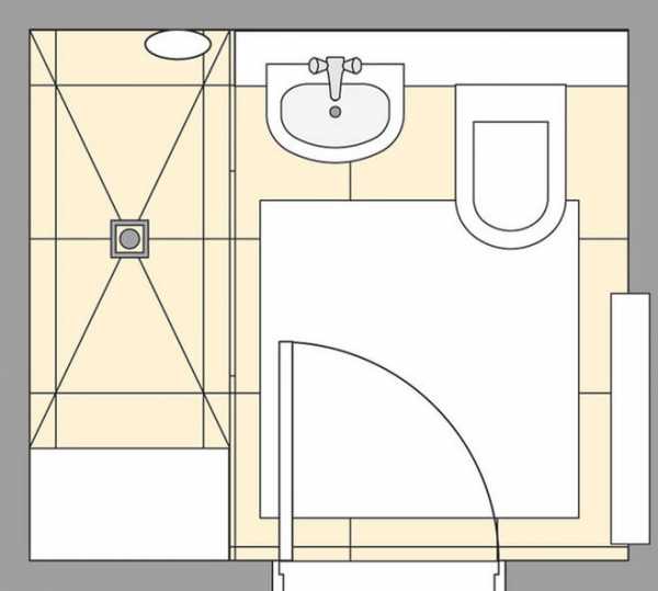 2. Планировка ванной и туалета с технологией мокрый пол.