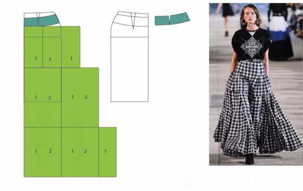 Есть выкройки одежды в стиле шебби-шик. Выкройка ультрамодной многоярусной юбки с воланами показана ниже на фото.