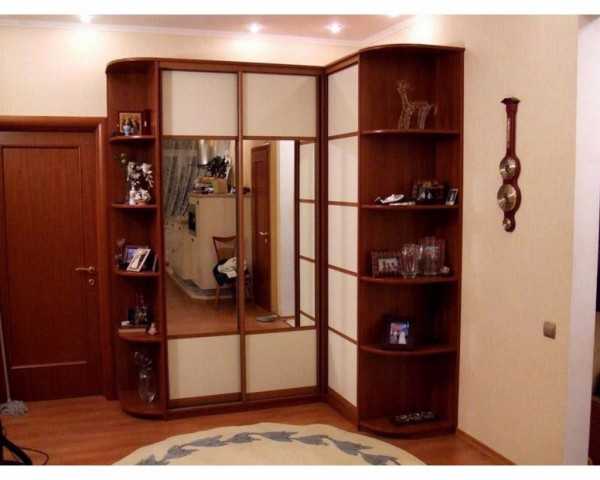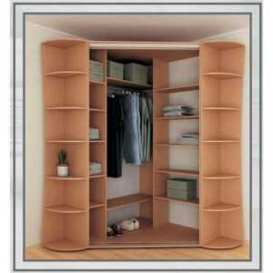 Интересные современные конструкции выдвижных элементов позволяют компактное их расположение внутри шкафа-купе, обеспечивая выдвижение по сложной траектории с одновременным разворотом конструкции, и применяются в шкафах узких прямолинейных или в угловых.