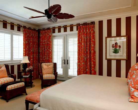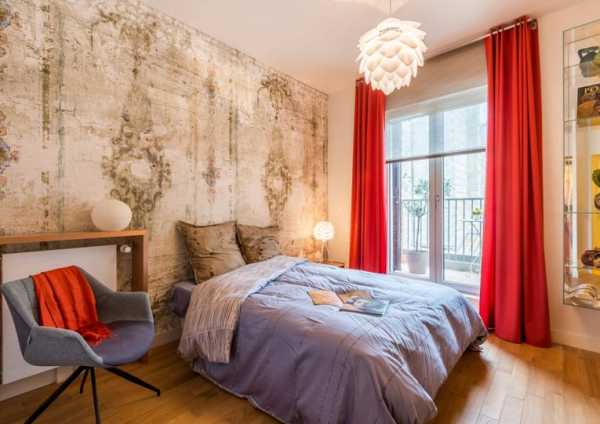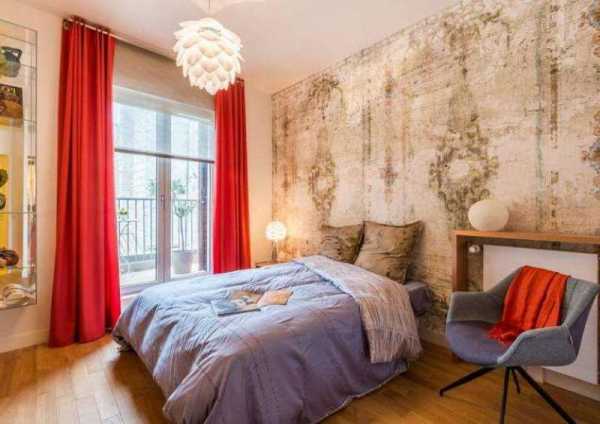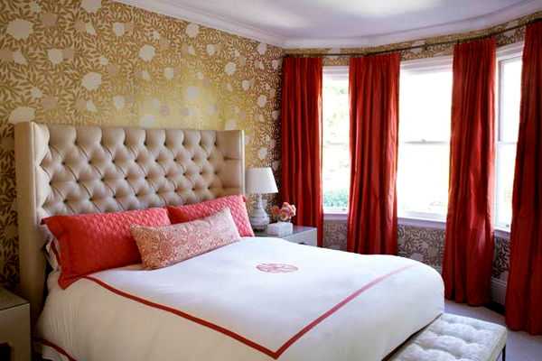 Красные шторы в спальне, какие обои выбрать.