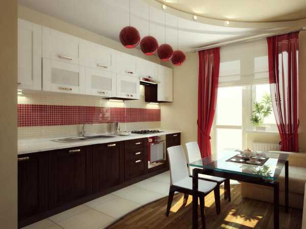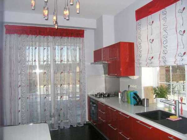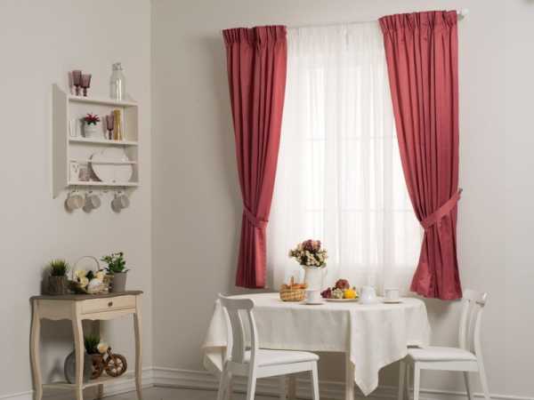 Яркие тона и оттенки великолепно выглядят в интерьере кухни. Однако здесь особенно важно их сочетание и формирование цветовой гаммы в целом. Поскольку эта комната является многофункциональной, использовать красные шторы для кухни следует с осторожностью. Излишне выразительные и яркие тона необходимо погасить другими оттенками: серым, белым, бежевым. Отличным решением будет сочетание черно-красных либо темно-лиловых небольших занавесок, оттененных светлой отделкой стен.