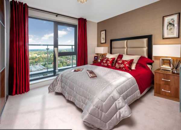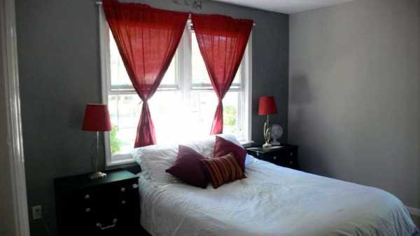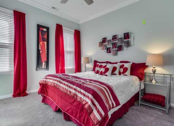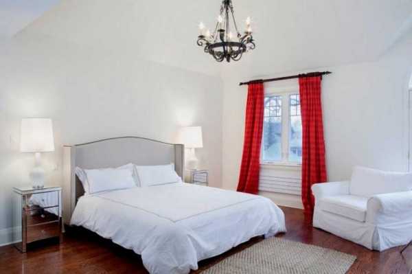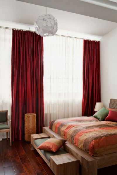Красные шторы в спальной комнате