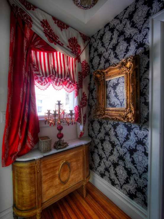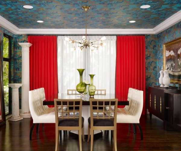 Прежде чем использовать шторы красных оттенков, необходимо учесть, что красный цвет визуально скрадывает пространство.