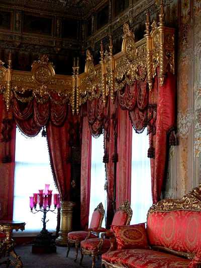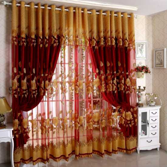 Красные шторы с золотой вышивкой или тесьмой идеально впишутся в роскошные интерьеры барокко, рококо или ампир.
