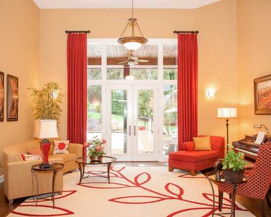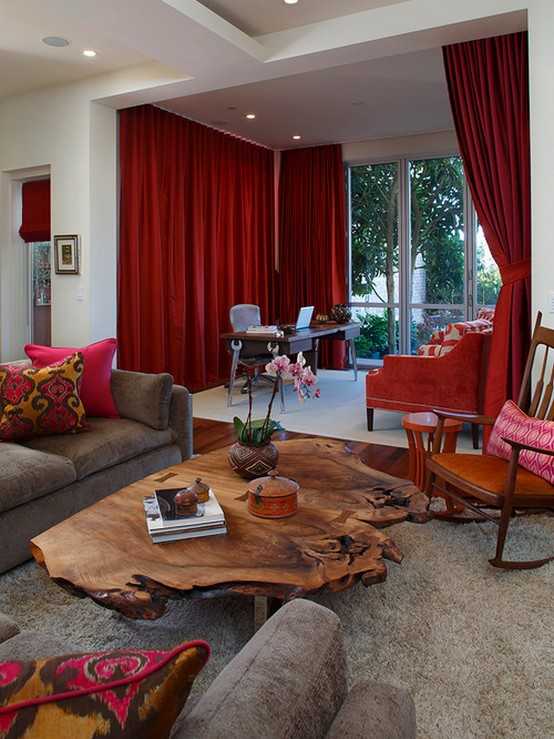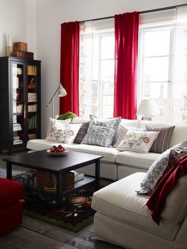 Стоит ли выбирать красные занавески для гостиной комнаты
