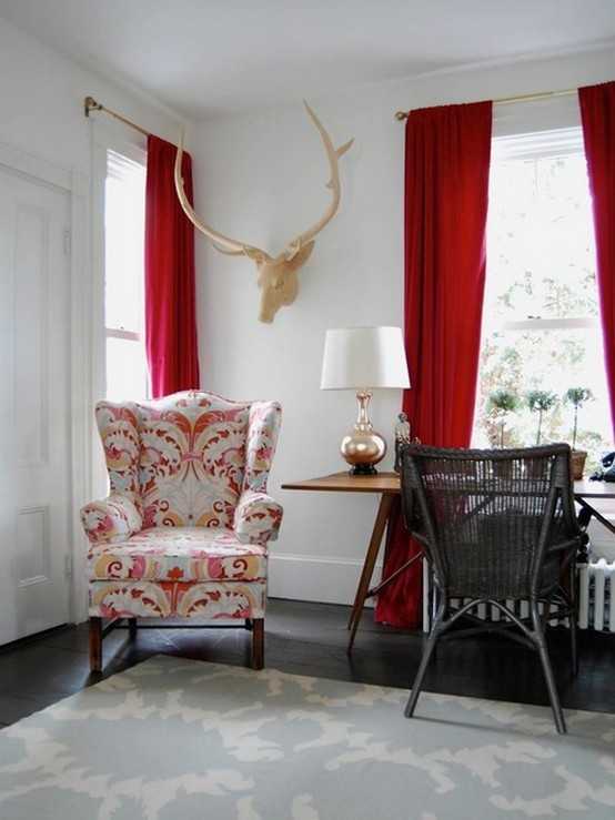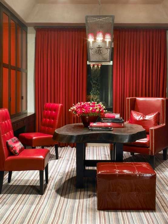 Красные шторы в домашнем интерьере – выбор страстных натур (24 фото)