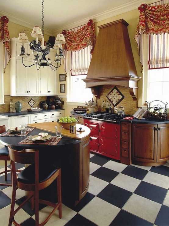 Кухонные шторы красного цвета могут взбодрить и повысить аппетит.