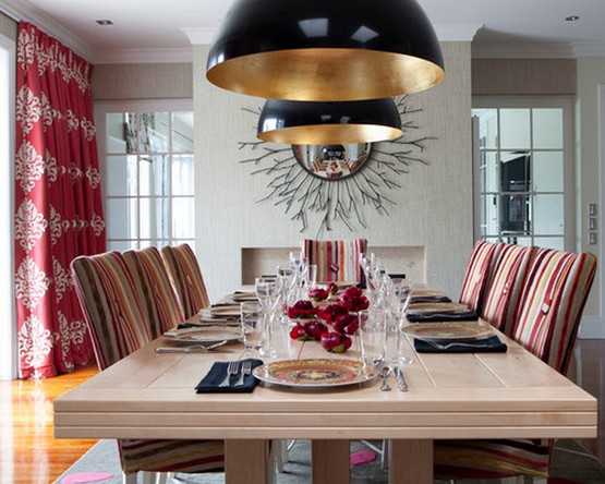 Красно-золотые или черно-красные занавески подчеркнут изысканность стиля арт-деко.