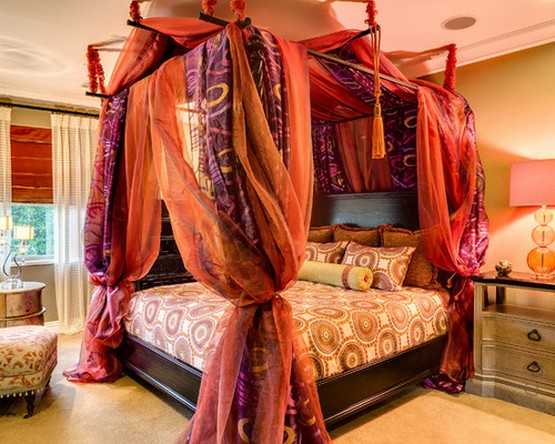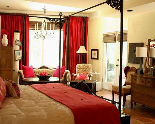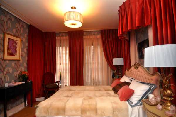 Красные шторы в спальне, фото.Красные шторы в спальне, фото.