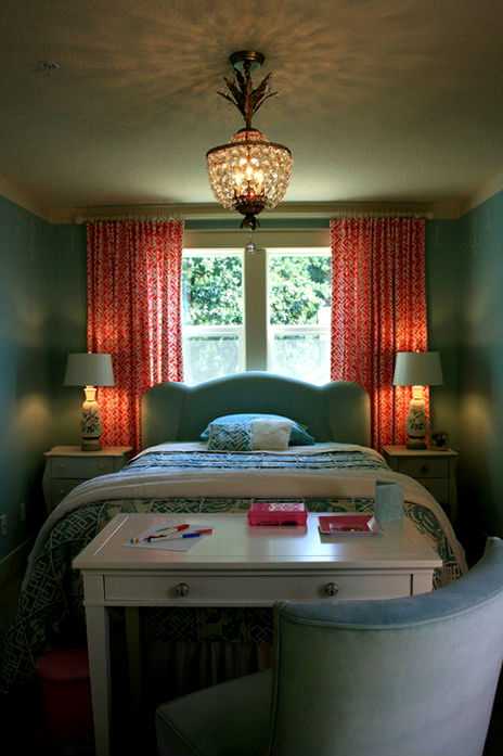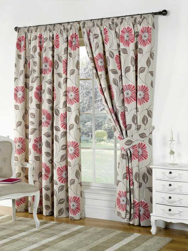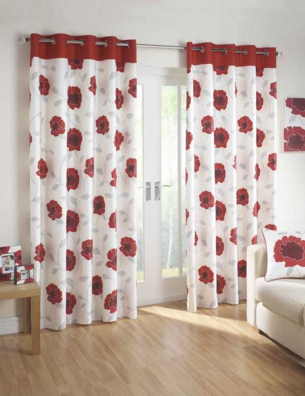 Алые или коралловые шторы с белым орнаментом или цветами идеально подойдут для плохо освещенной спальни. Нежные алые шторы в романтическом стиле украсят даже самую простую обстановку.