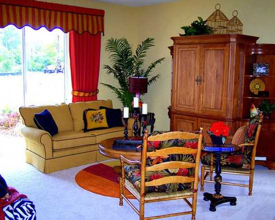 Следует помнить, что если гостиная небольшого размера, то красные занавески должны быть как можно больше прозрачными, так как в этом случае цвет не будет выглядеть слишком насыщенным и утомительным. Кроме того, исчезнет ощущение театральности в помещении.