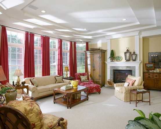 Поэтому это место во всем доме должно быть обязательно светлым, просторным и уютным. Особое внимание нужно уделить выбору красных штор для интерьера гостиной.