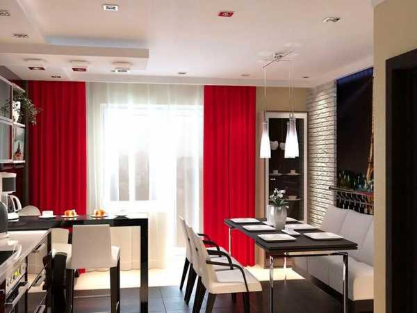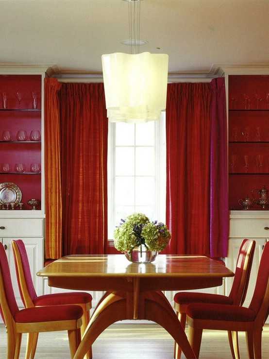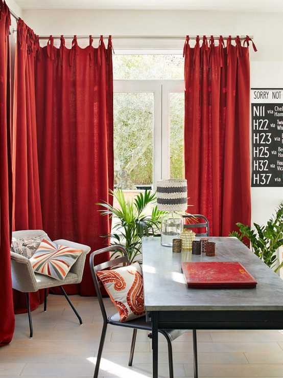 Красные шторы в интерьере кухни, спальни, детской и гостиной
