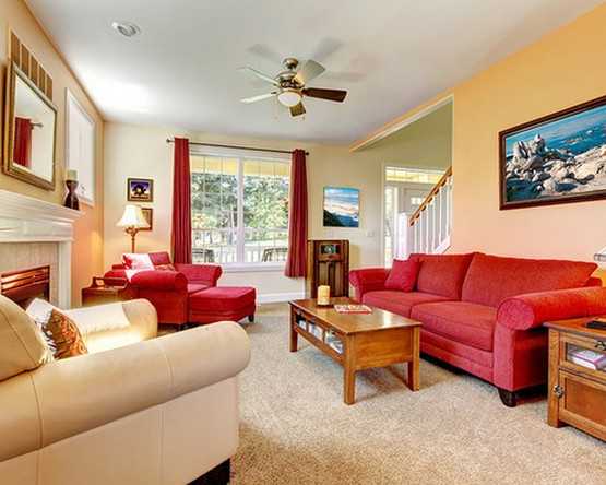 Красный – цвет действия и страсти. Стены, выкрашенные в красный цвет, чрезмерно перегружают психику: возникает ощущение избыточного тепла и духоты. Как правило, дизайнеры не берут красный цвет за основу при планировке интерьеров жилых помещений, его используют только в качестве цветовых акцентов, пятен, вкраплений. Акцентами можно считать мебельную обивку, декоративные подушки и пуфы, напольные коврики, пледы, покрывала, шторы красного цвета.