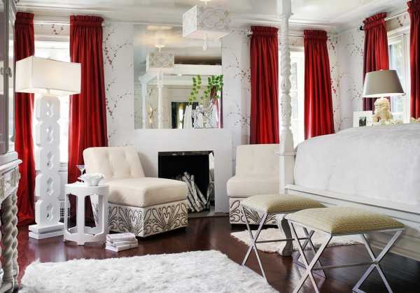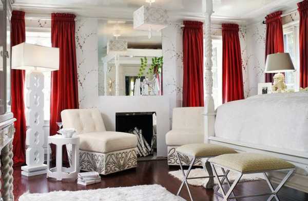 Красные шторы в интерьере спальни.Насыщенный красный цвет смотрится не просто дорого, а по-настоящему роскошно, его глубина словно завораживает, им хочется любоваться и восторгаться. Не многие знают, что красный цвет очень почитаем в разных странах, так в Европейских культурах данный цвет символизирует мудрость и мужество, более того в средневековье на самые торжественные мероприятия вроде коронации или свадьбы надевали наряды именно красного цвета. К тому же давно известно, что красный тон дарит уверенность в своих силах, заряжает энергией и способствует налаживанию дружеских связей, но если Вы решили оформлять домашние помещения в таком цвете, то будьте готовы к тому, что его переизбыток может привести к неконтролируемым вспышкам гнева. Для того чтобы помещение казалось гармонично оформленным, важно со всей серьезностью отнестись к выбору обоев, штор и покрывал. Допустим, на начальной стадии ремонта, Вы точно решили украсить окна в спальне красными шторами, и перед Вами явно стал вопрос подбора цвета обоев, так вот сегодняшний обзор поможет Вам разрешить возникшую проблему. Мы расскажем Вам на фоне каких стен будут наилучшим образом смотреться красные шторы в спальне.