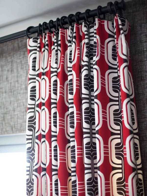Красные шторы с черным орнаментом