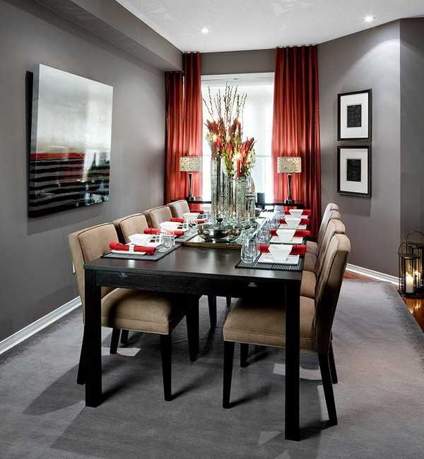 Нужно помнить, что слишком перенасыщать эту комнату красными вещами не стоит. Достаточно добавить несколько аксессуаров красного оттенка, будь это подушки или картины. Тогда шторы не будут выглядеть случайным элементом помещения.