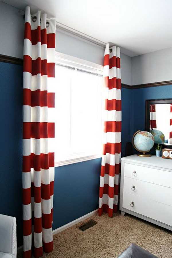 Белый цвет по праву считается лучшим компаньоном красного. И вот как могут выглядеть красно-белые шторы в детской.