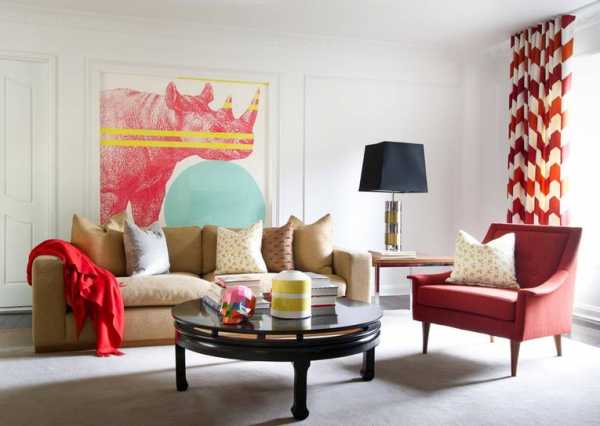 В качестве дополнительных аксессуаров, которые будут «перекликаться» с ярким текстилем, можно использовать декоративные вазы и посуду, абажуры светильников, чехлы для мебели и диванных подушек.