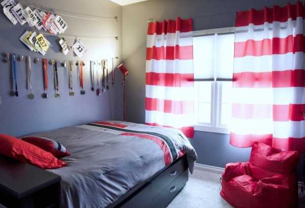 Шторы-нити в сочетании с тюлем наполнят комнату девочки романтикой, делая интерьер более женственным. А спальне мальчика подойдут бело-черно-красные композиции, позволяющие сбалансировать энергетику цветов. Темные цвета, разумеется, должны присутствовать в меньшинстве.