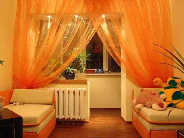 - Очевидная легкость – за счет этого свойства ткани шторы из органзы способны придать интерьеру некую воздушность и невесомость. Для эркера подойдут шторы из органзы, они отлично его задрапируют.