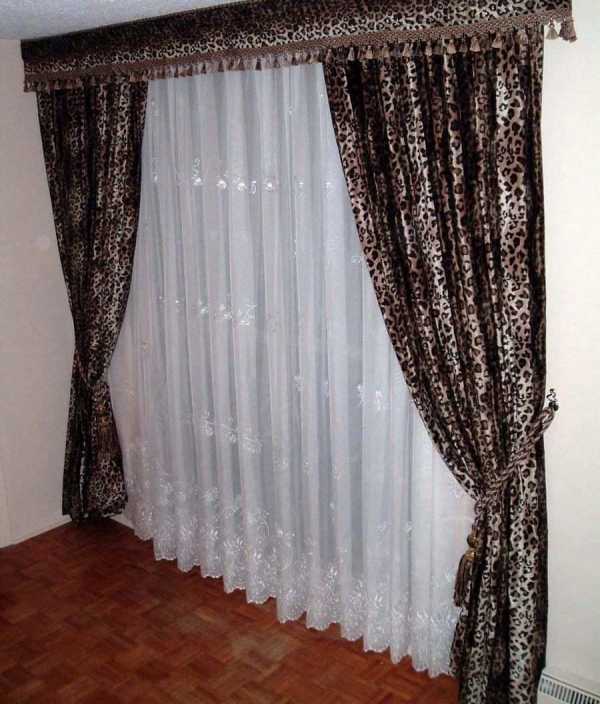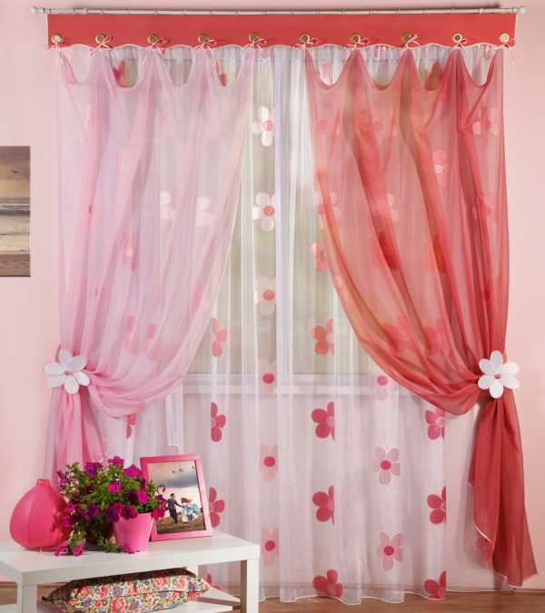 Еще одно украшение, которое уже упоминалось выше – ламбрекен из органзы. Это могут быть простые, односекционные ламбрекены или изделия, состоящие из нескольких секций. Ламбрекен к шторе часто крепится на липучке.