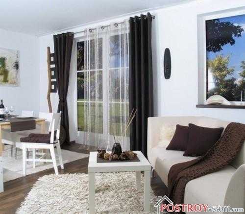 Но также хорошо органза смотрится и в самостоятельном виде. Люверсы соберут небольшие складки, чем украсят шторы, а обычные подвески придадут легкость и невесомость. Зал прекрасно смотрится с бежевыми гардинами и плотными шторами из органзы. В спальню можно повесить тюль из органзы с портьерами, что станет роскошной вуалью для комнаты отдыха.
