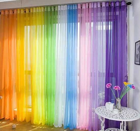 Благодаря разнообразию видов данного материала есть возможность подобрать шторы из органзы для кухни, спальни и гостиной, а также для детской комнаты.