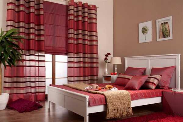 Особенно приемлем подобный вары, выполненному в таких же цветах. Если комнате не хватает теплоты, то дизайнеры рекомендуют выбирать светло-коричневые или бежевые сочетания оттенков в полосатых шторах. Ткань в полоску для штор нередко подбирается такого же цвета, что и декоративный материал на стенах.иант для спальни.