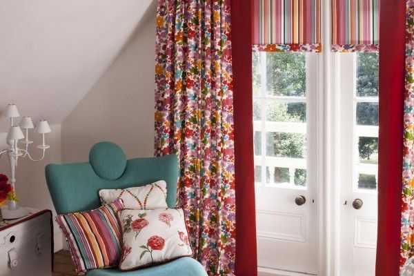 - дополнить интерьер небольшими деталями одного из присутствующих на занавесках цветов.