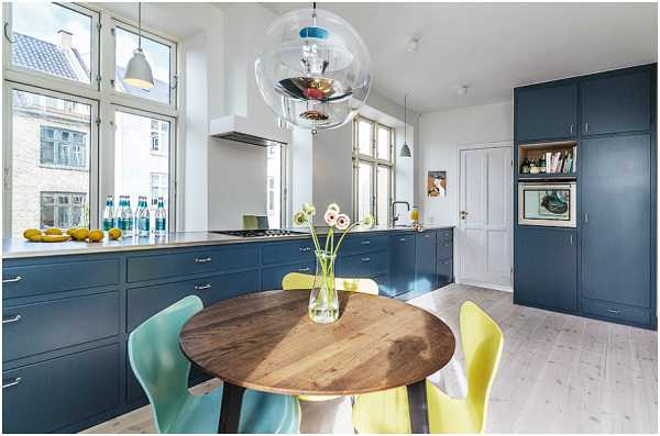Оформление кухни в скандинавском стиле с использованием синего цвета