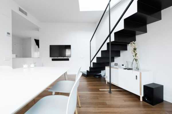 Черный также может помочь достичь минималистских пространств. Это нейтральный цвет и очень простой в сочетании. Удачный трюк, чтобы не создавать холодные условия, — это смешивать черный цвет с текстурой дерева. Например, на этом фото гостиной лестница изготовлена из дерева и покрашена в черный.