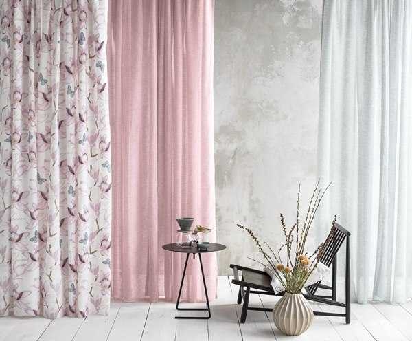 Учитывая фактуру, лучше всего подходит хлопок и лен. Также используется сатин и дамаст. Дымка и муслин идеальны для занавесок, которые будут пропускать максимум света — это один из основных приемов отделки окон.