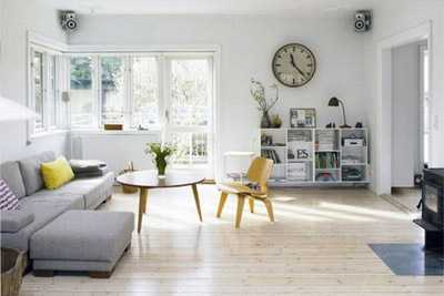 Скандинавский дизайн используется в первую очередь в небольших квартирах для визуального расширения пространства. Главная задача – сделать комнаты максимально светлыми и просторными. Обычно в таком интерьере для украшения используются настенные декорации. Можно наклеить на белые стены пару полос ярких обоев, повесить картины или декоративные композиции из фоторамок и сувениров. Этнический колорит квартире придадут картины рыб и кораблей. Если у Вас полно семейных фотографии, их можно развесить по стенам.