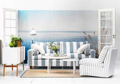 Традиции северных стран подчеркивают декоры на морскую тематику: картины с изображениями моря и кораблей, полосатые текстуры, много синего цвета, элементы кораблей в качестве элементов декора.