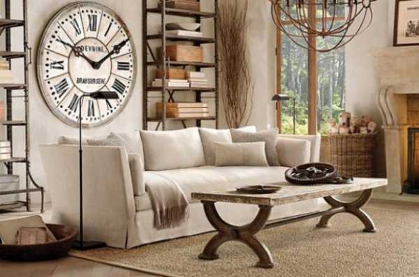 В стиле важным элементом служат журнальные столы. Именно столы, а не столики, так как размером они с небольшую кушетку, низкие и широкие. Изготавливаются такие столики из натурального дерева и в тон им замечательно подходят кремово-оливковые полосатые чехлы на мягкой мебели.