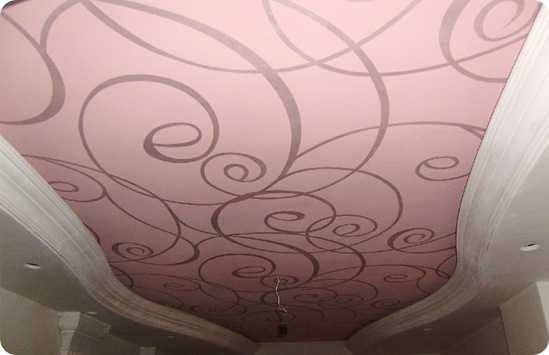 Текстильные системы не отличаются разнообразием расцветок, но зато по ним можно делать художественную роспись или перекрашивать. Роспись, это, конечно, потрясающе выглядит, но согласитесь рисовать на потолке не очень удобно. Для любителей чего-нибудь креативного и необычного можно посоветовать фотопечать или виниловые наклейки. С тканевыми потолками не создать причудливые изогнутые формы.