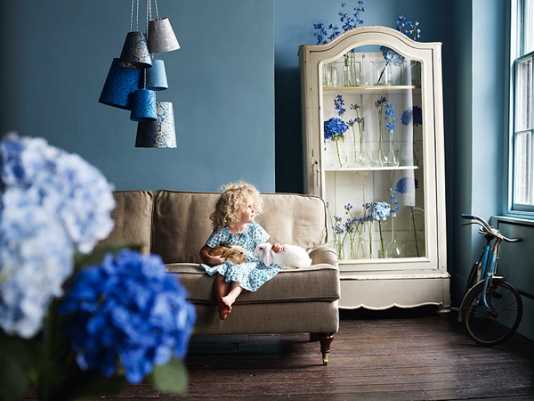 Синий — это невероятно красивый, чистый цвет, который обладает удивительной способностью создавать атмосферу умиротворенности и гармонии. Синий настраивает на спокойные размышления, успокаивает и помогает сосредоточиться, что делает оттенок идеальным для использования в спальне и рабочем кабинете. В кухне, гостиной или детской также можно расставить несколько «прохладных» акцентов.