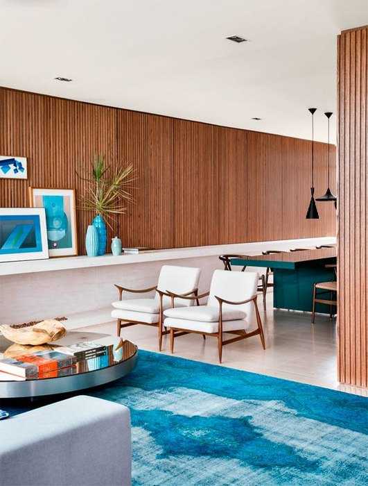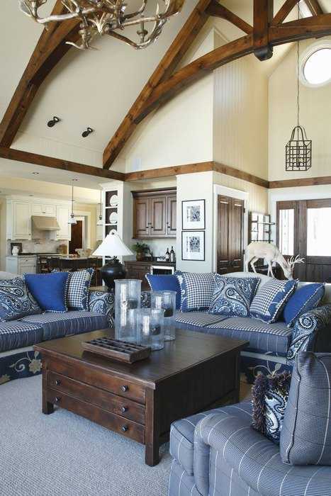 Коричневый и синий в интерьере гостиной