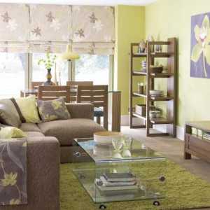 Удачным видится внутреннее оформление комнаты, если совместить цвет древесной коры и зелёный — собственно, классическая природная комбинация в дизайне жилых помещений. Для гостиных комнат можно применить в качестве пары: