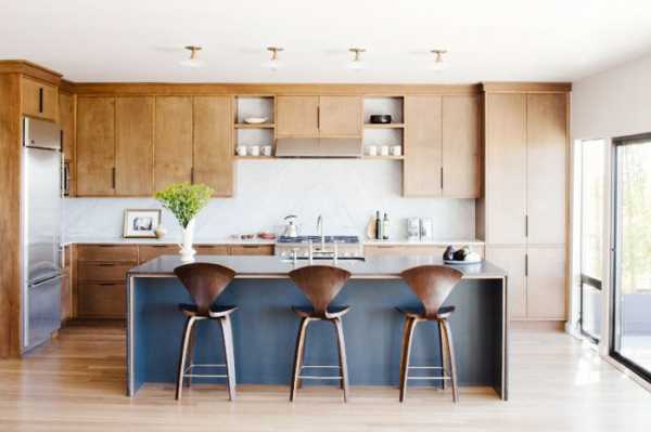 Оттенки синего и коричневого в интерьере кухни