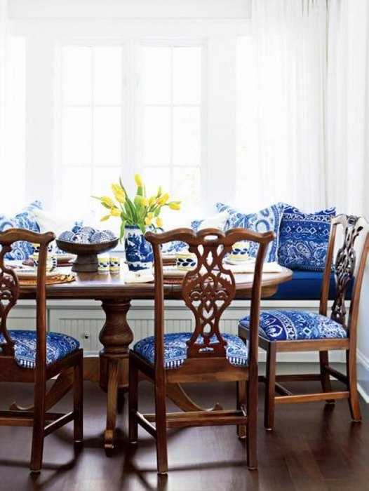 Синий и коричневый в интерьере столовой