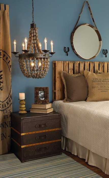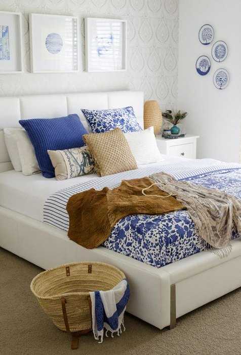 Синий и коричневый в интерьере спальни