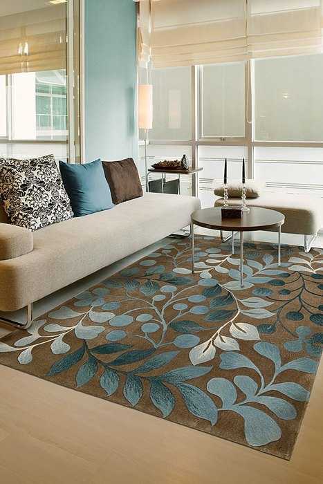 Коричневый и голубой в интерьере гостиной