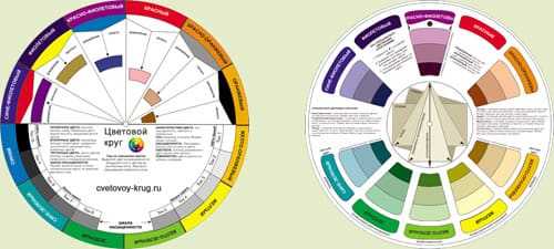 Если вы ещё не ознакомились, то рекомендуем вам ознакомиться с полезным практическим инструментом, в котором заложены все описанные здесь и не описанные комбинации тонов — это цветовой круг колориста (дизайнера, художника). Им очень удобно пользоваться как шпаргалкой, так как все сочетания запомнить трудно, а данный инструмент можно держать в руках и открывать в окошках те комбинации которые вам нужны.