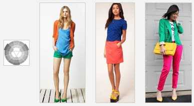 Так можно скомбинировать, например, синий электрик и яркий оранжевый — смелое и дерзкое сочетание. Скомбинировав противоположные друг другу зеленый и красный цвета можно прослыть экстравагантной персоной, обладающей тонким художественным вкусом.