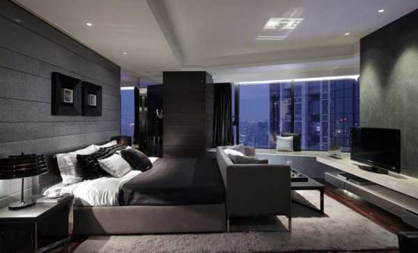 Декорировать спальню аксессуарами также важно. Здесь будут уместны простое зеркало, фотографии в строгих рамках, хорошо оснащенный аквариум. Главным аксессуаром стиля станет современная техника.